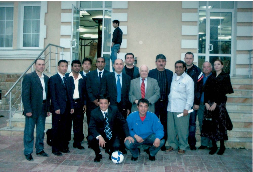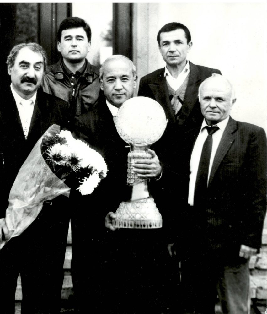 Лев Викторович Вахтин футбол жамоатчилиги орасида (олд қаторда ўнгдан биринчи ҳозирги кунда «Нефтчи»нинг ижрочи директори Зоҳиджон Ғофуров)