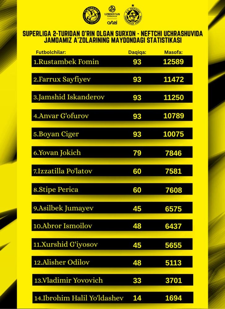 📊 Uchrashuv statistikasi (yugurilgan masofa)